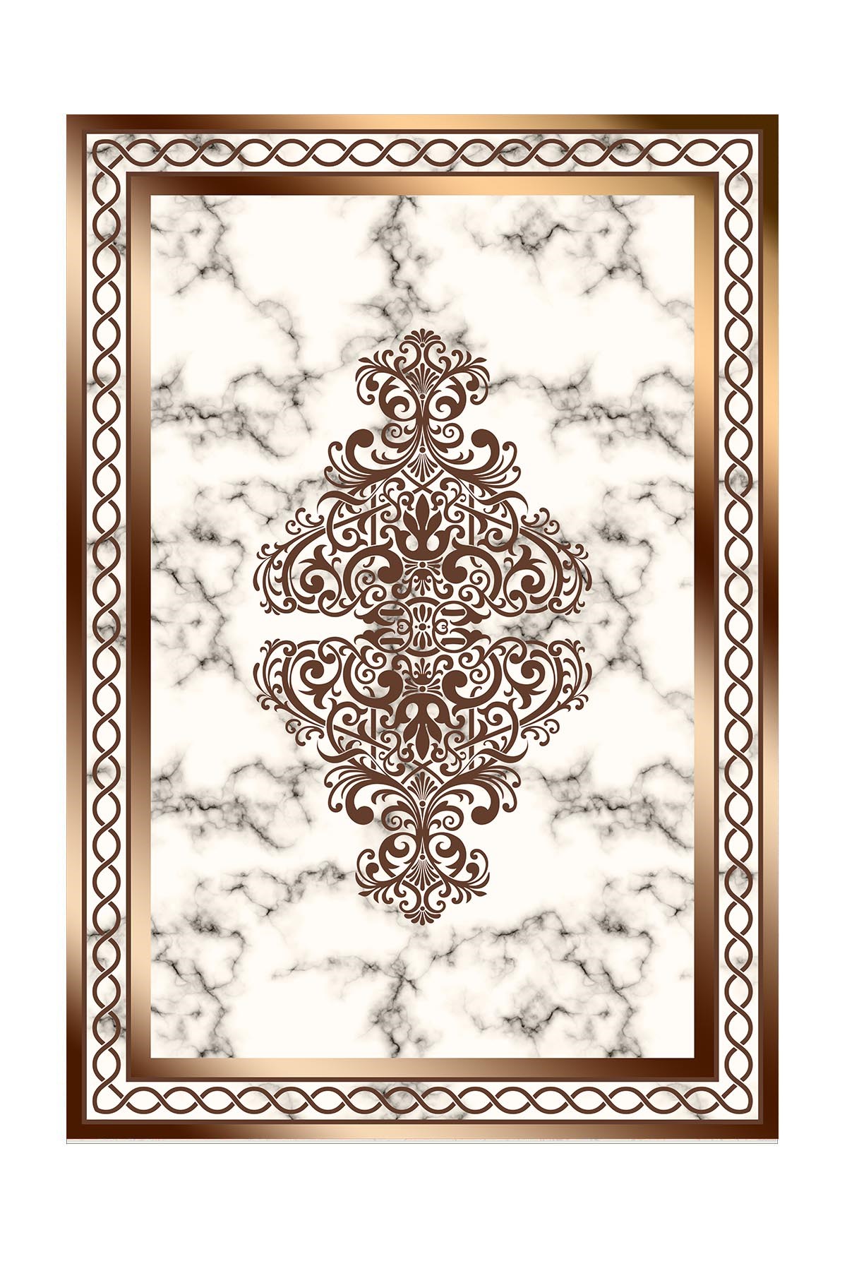 Dijital Baskılı Yıkanabilir Beyaz Gold Mermer Desenli Çerçeveli Kaymaz Taban Halı