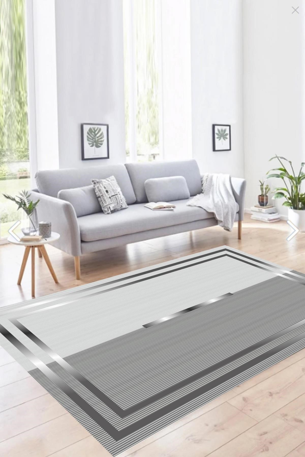 Dijital Baskılı Yıkanabilir Gri Desenli Kaymaz Taban Halı