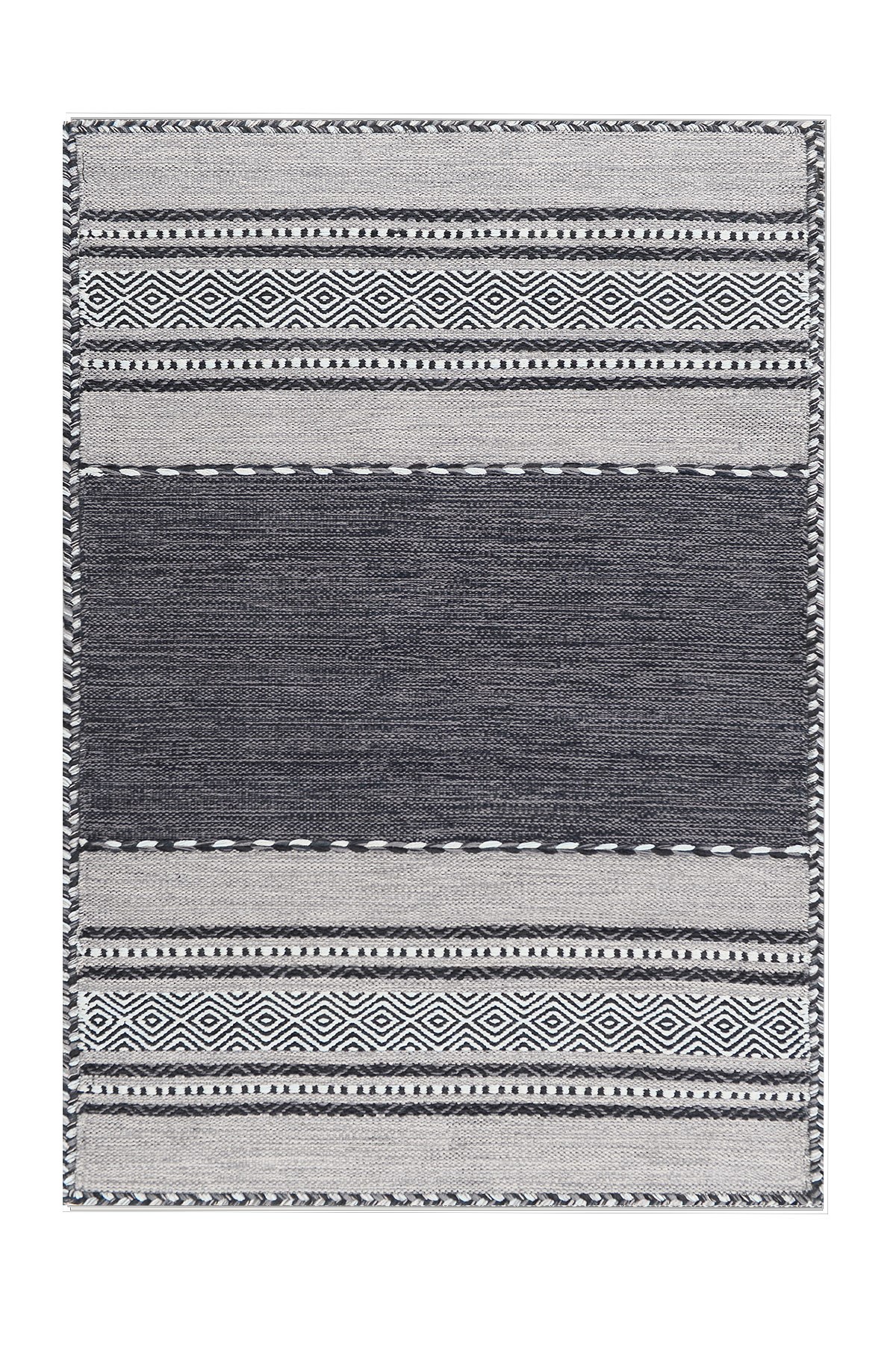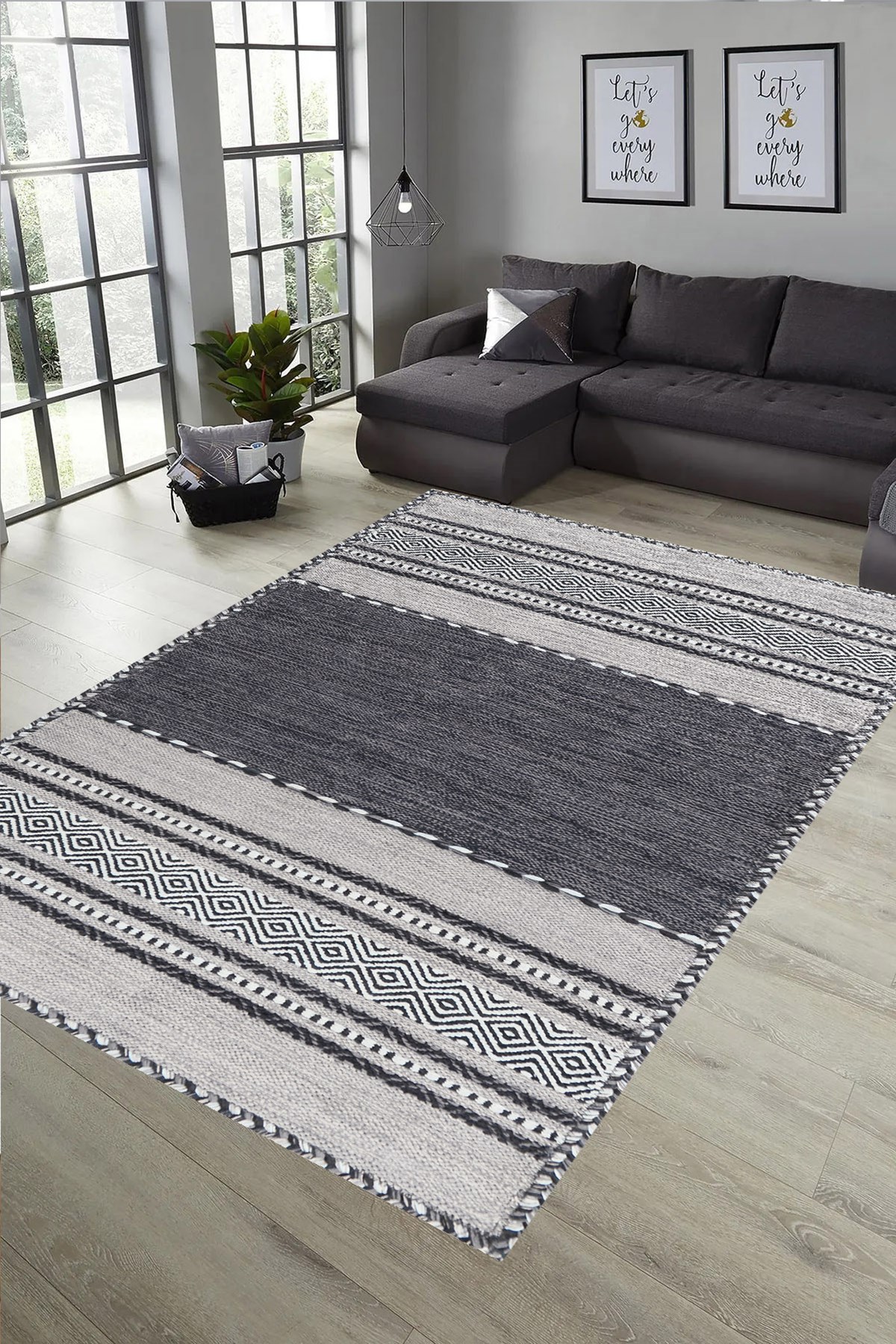 Dijital Baskılı Yıkanabilir Gri Renkli Çizgi Desenli Kaymaz Taban Halı