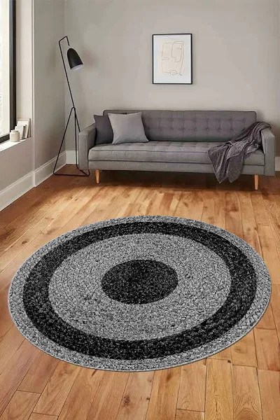 Dijital Baskılı Yıkanabilir Gri Renkli Yuvarlak Kaymaz Taban Halı
