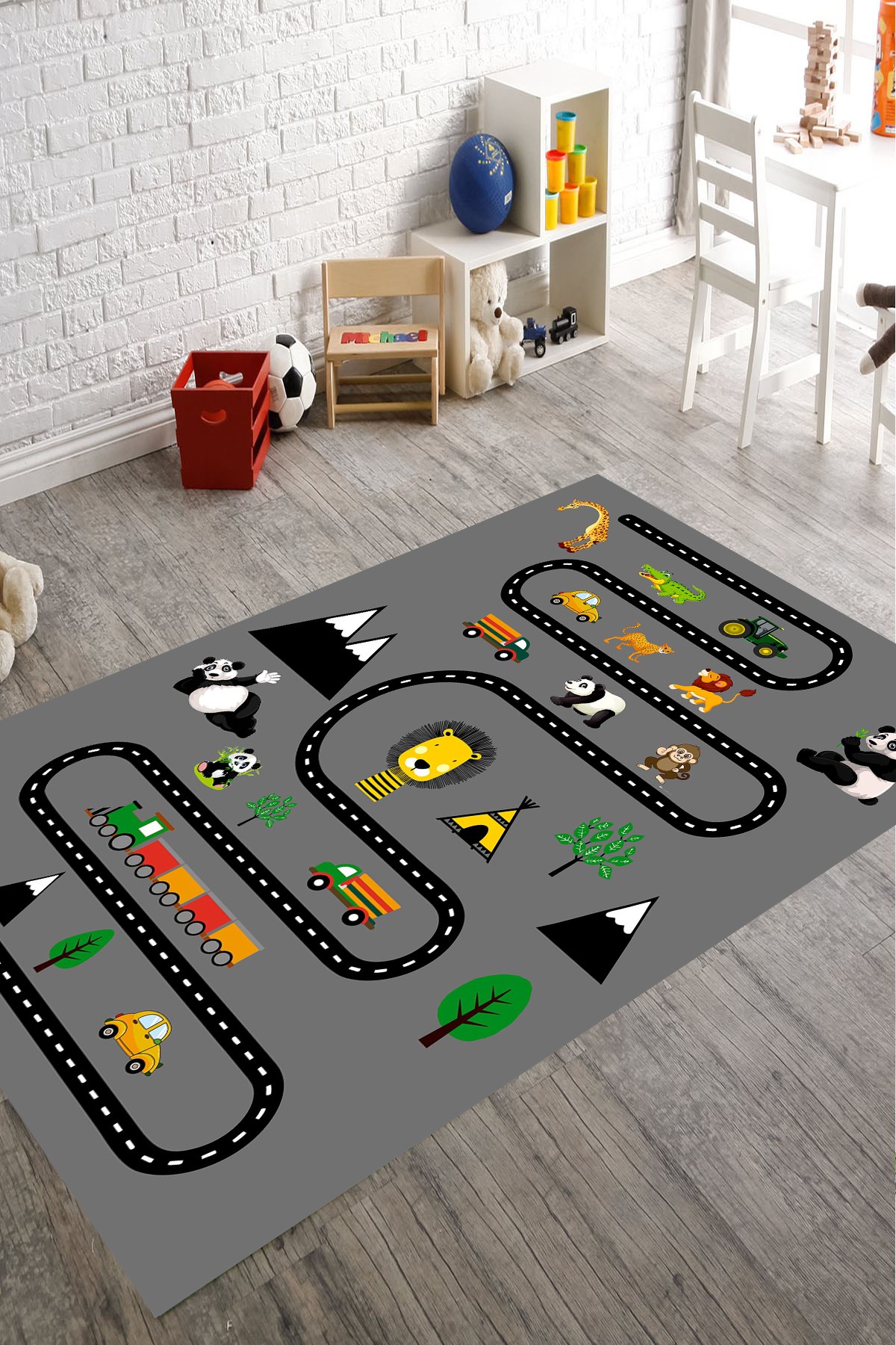 Dijital Baskılı Yıkanabilir Kaymaz Taban Trafik Yollu Desenli Çocuk Odası Halısı
