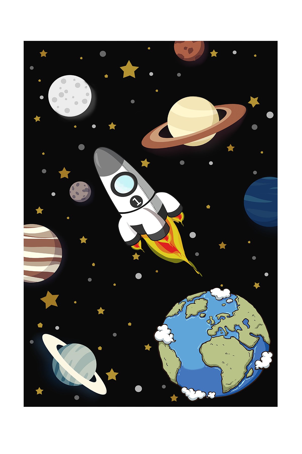 Dijital Baskılı Yıkanabilir Kaymaz Taban Uzay Desenli Çocuk Odası Halısı