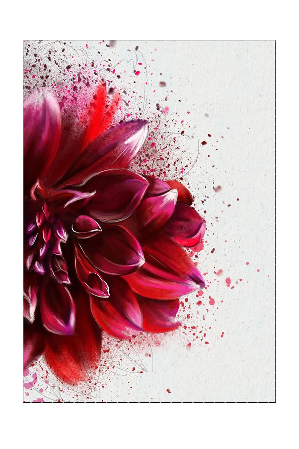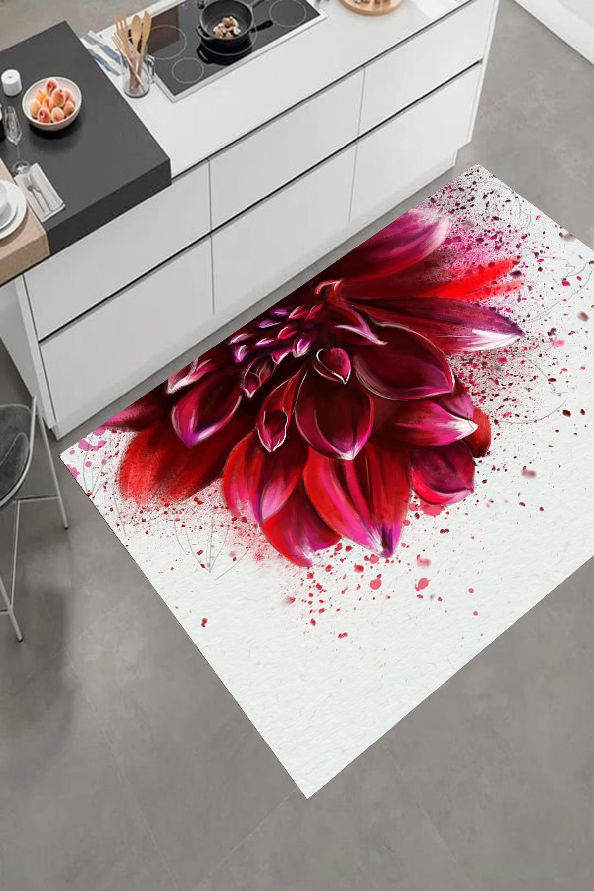 Dijital Baskılı Yıkanabilir Kırmızı Çiçek Desenli Kaymaz Taban Mutfak Halısı