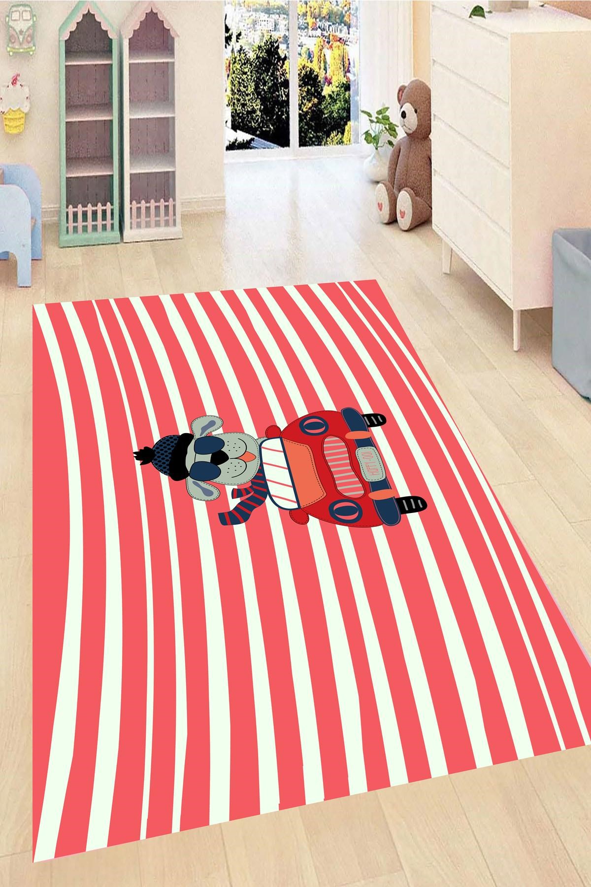 Dijital Baskılı Yıkanabilir Kırmızı Renkli Sevimli Ayı Desenli Kaymaz Taban Çocuk Halısı