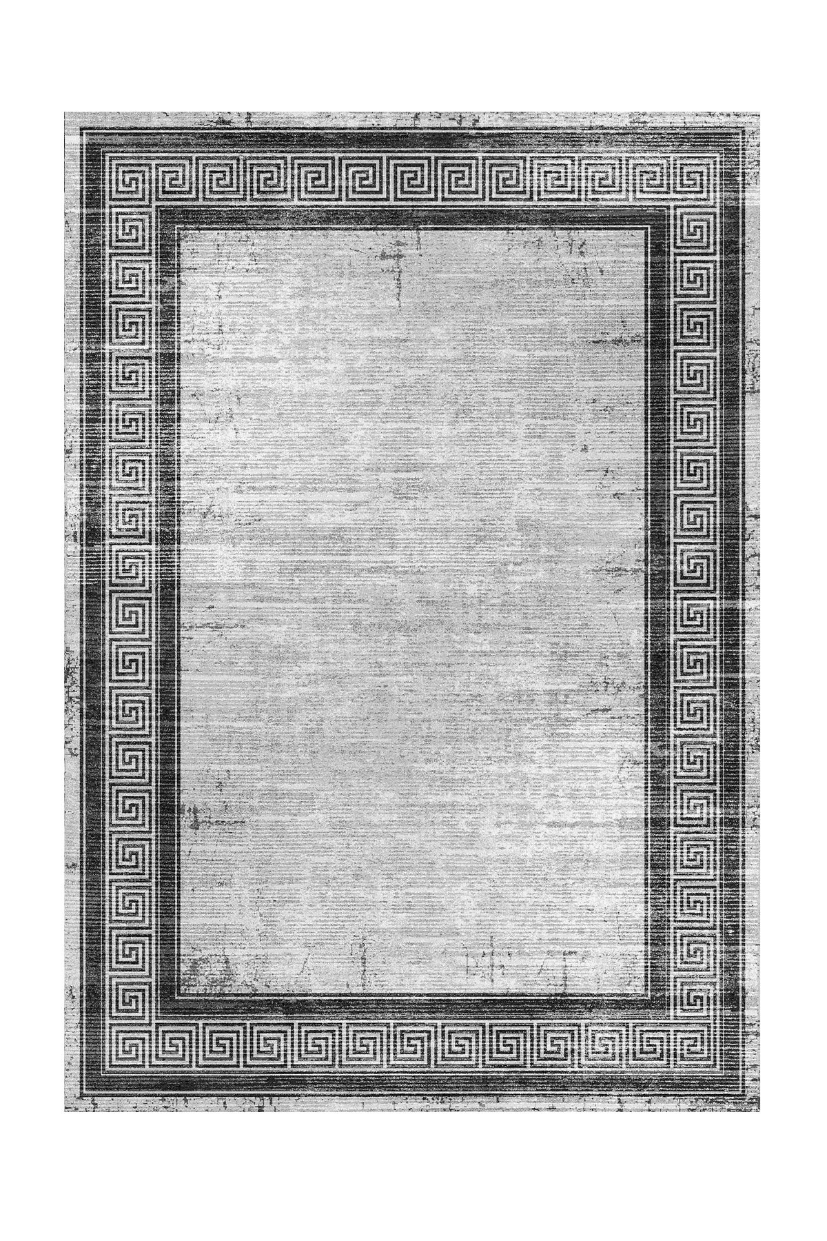 Dijital Baskılı Yıkanabilir Modern Desenli Gri Çerçeveli Kaymaz Taban Halı