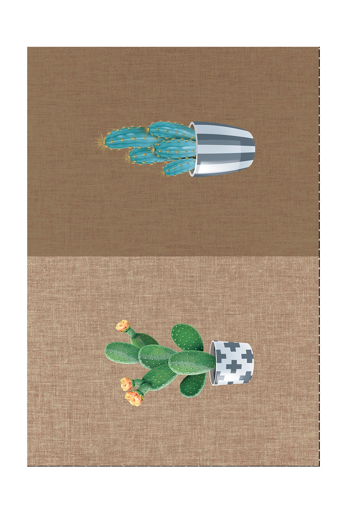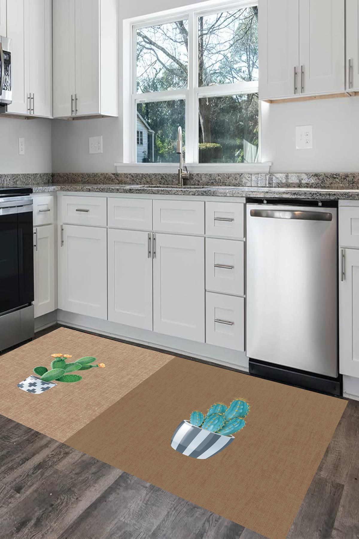 Dijital Baskılı Yıkanabilir Renkli Kaktüs Desenli Kaymaz Taban Mutfak Halısı