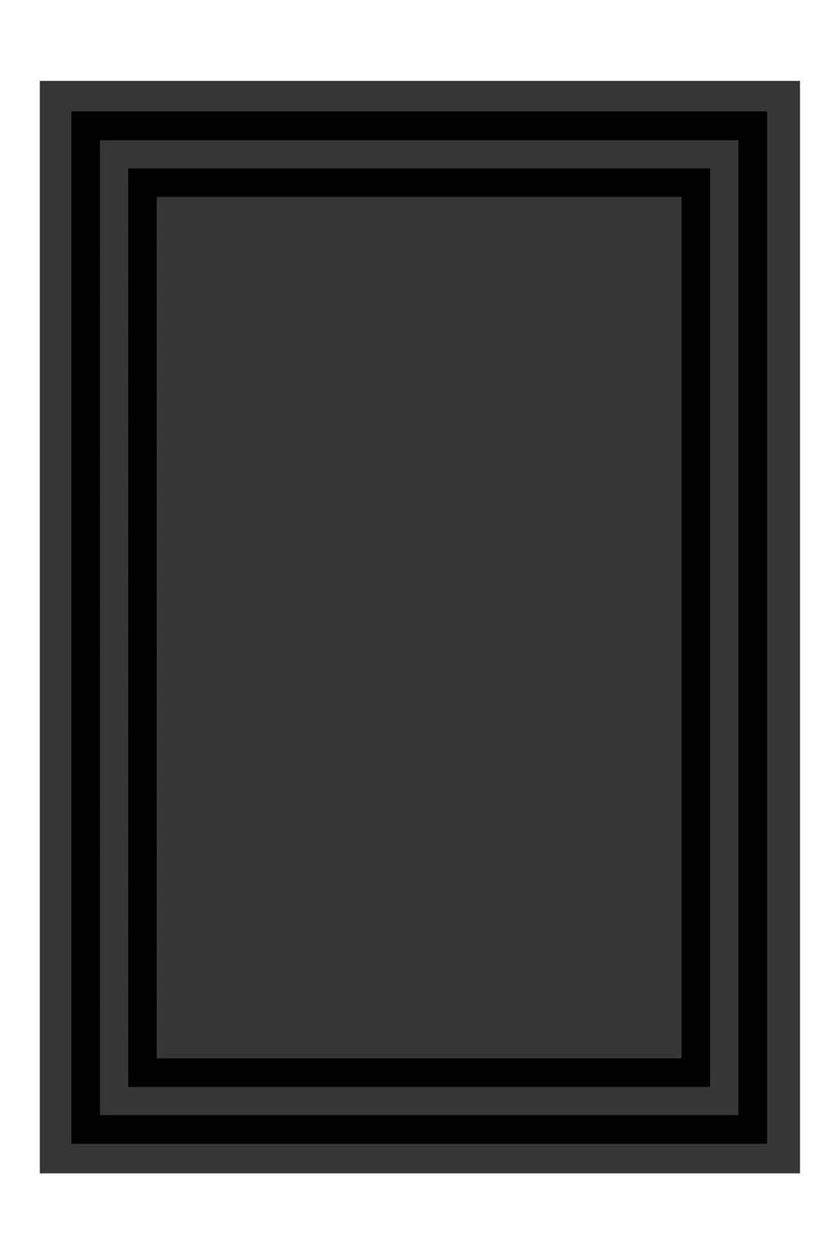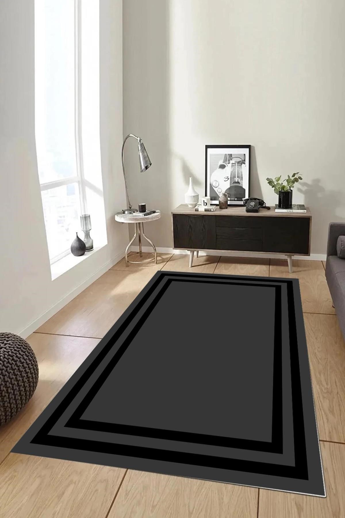 Dijital Baskılı Yıkanabilir Siyah Çerçeveli Desenli Kaymaz Taban Halı
