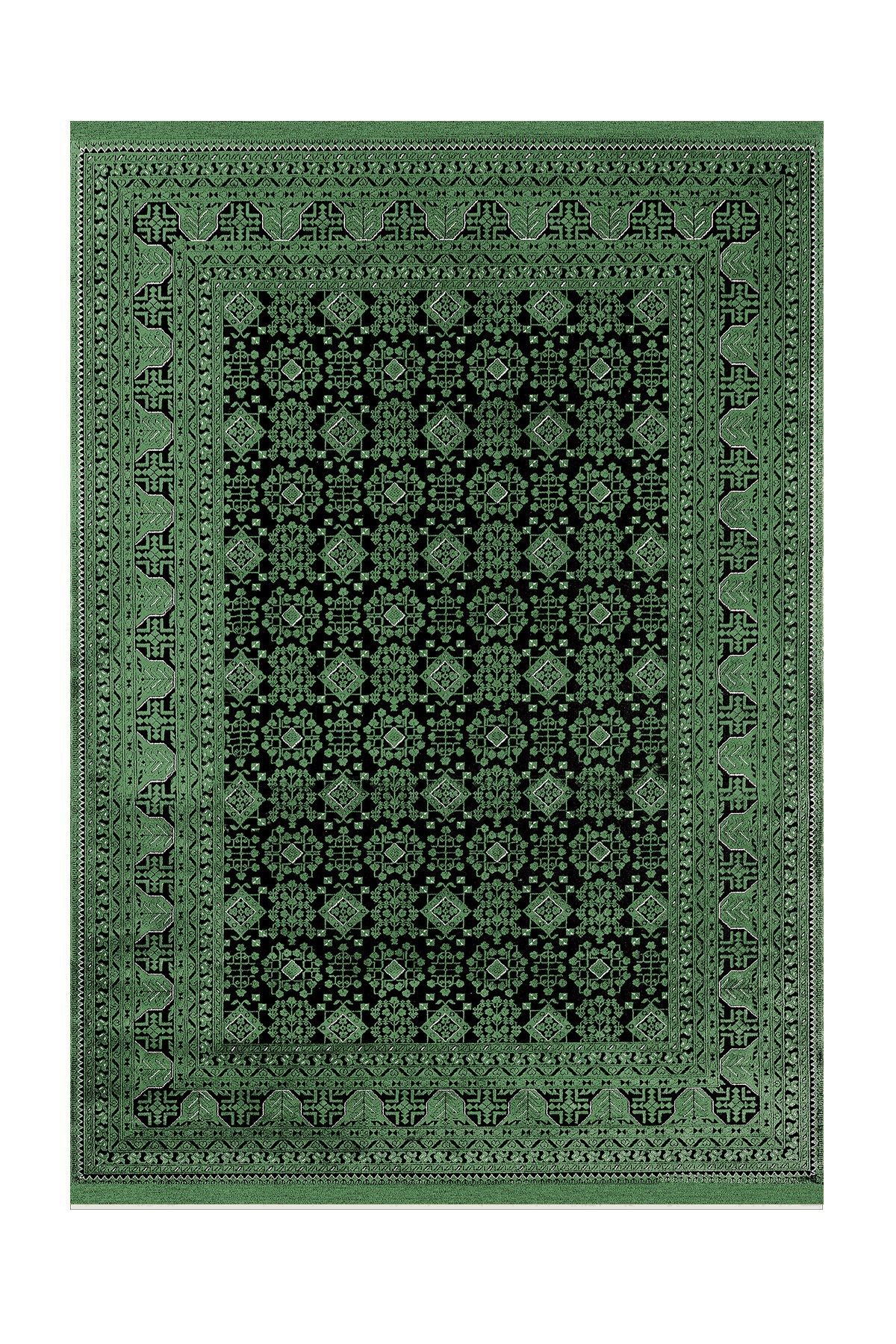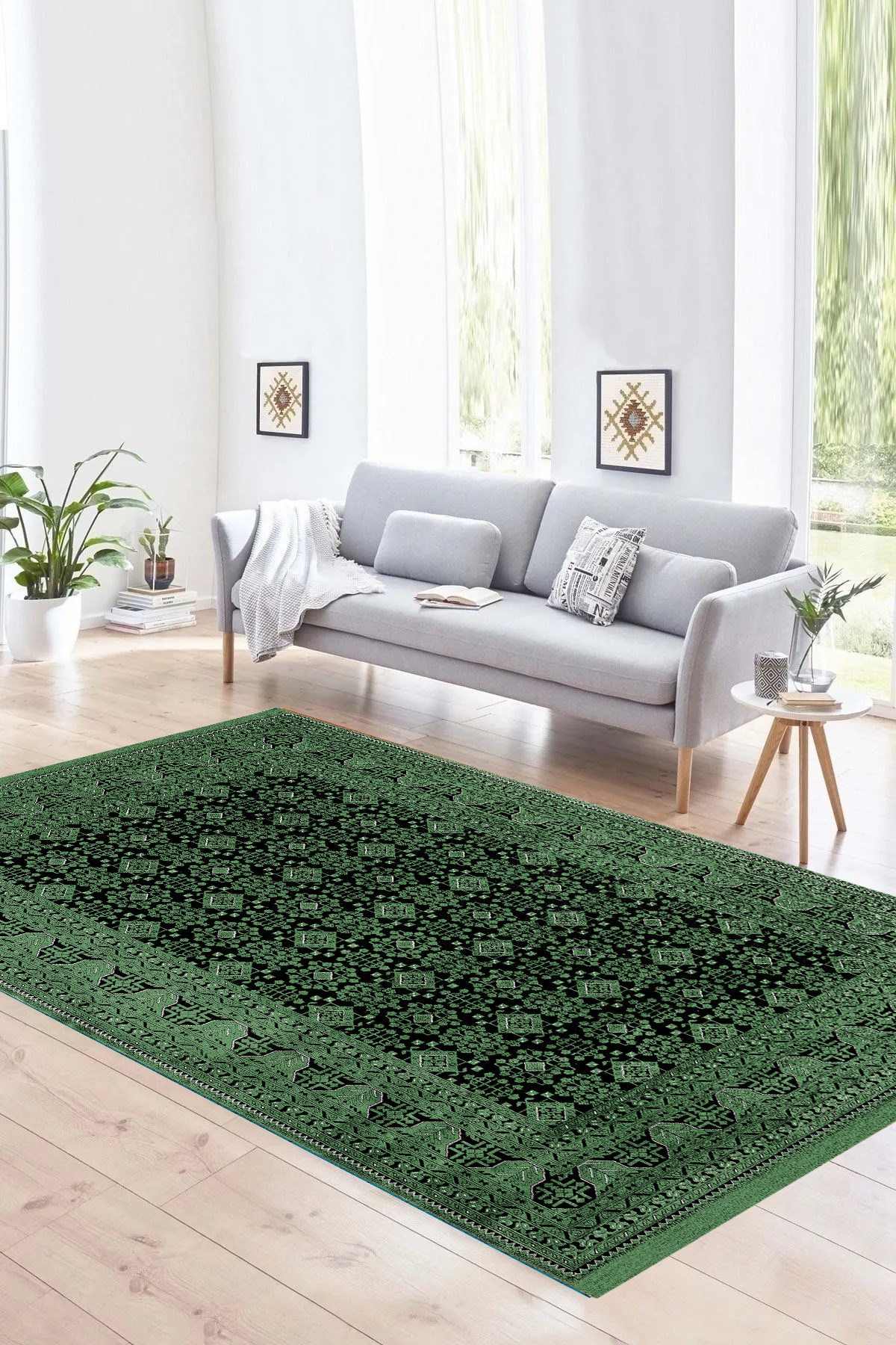 Dijital Baskılı Yıkanabilir Yeşil Renkli Siyah Desenli Kaymaz Taban Halı