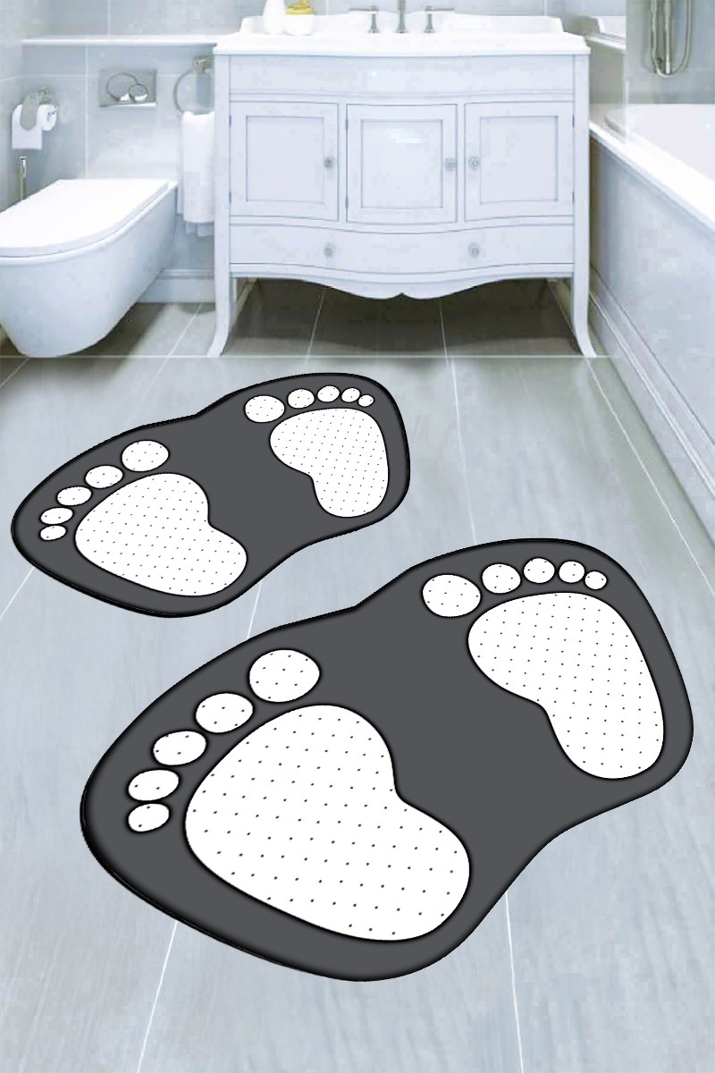 Dekoratif Dijital Baskılı Ayak İzi Desenli Banyo Paspas Takımı