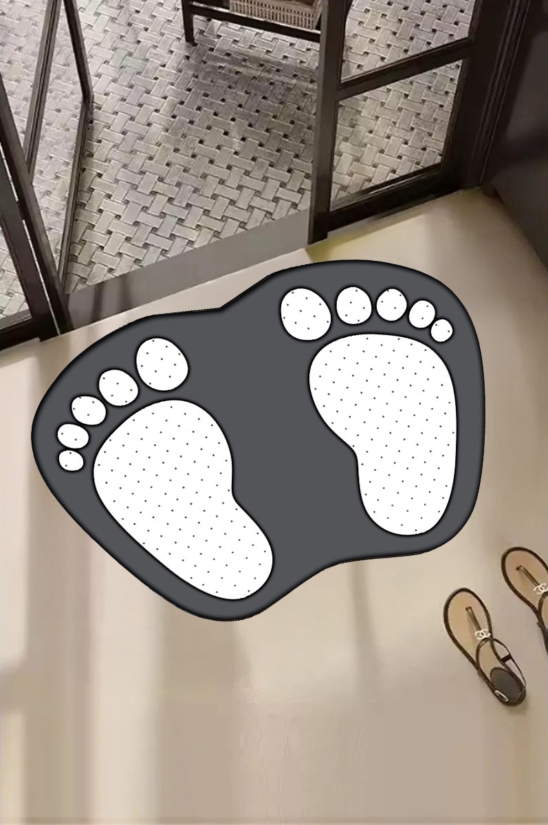 Dekoratif Dijital Baskılı Ayak İzi Desenli Banyo Paspası