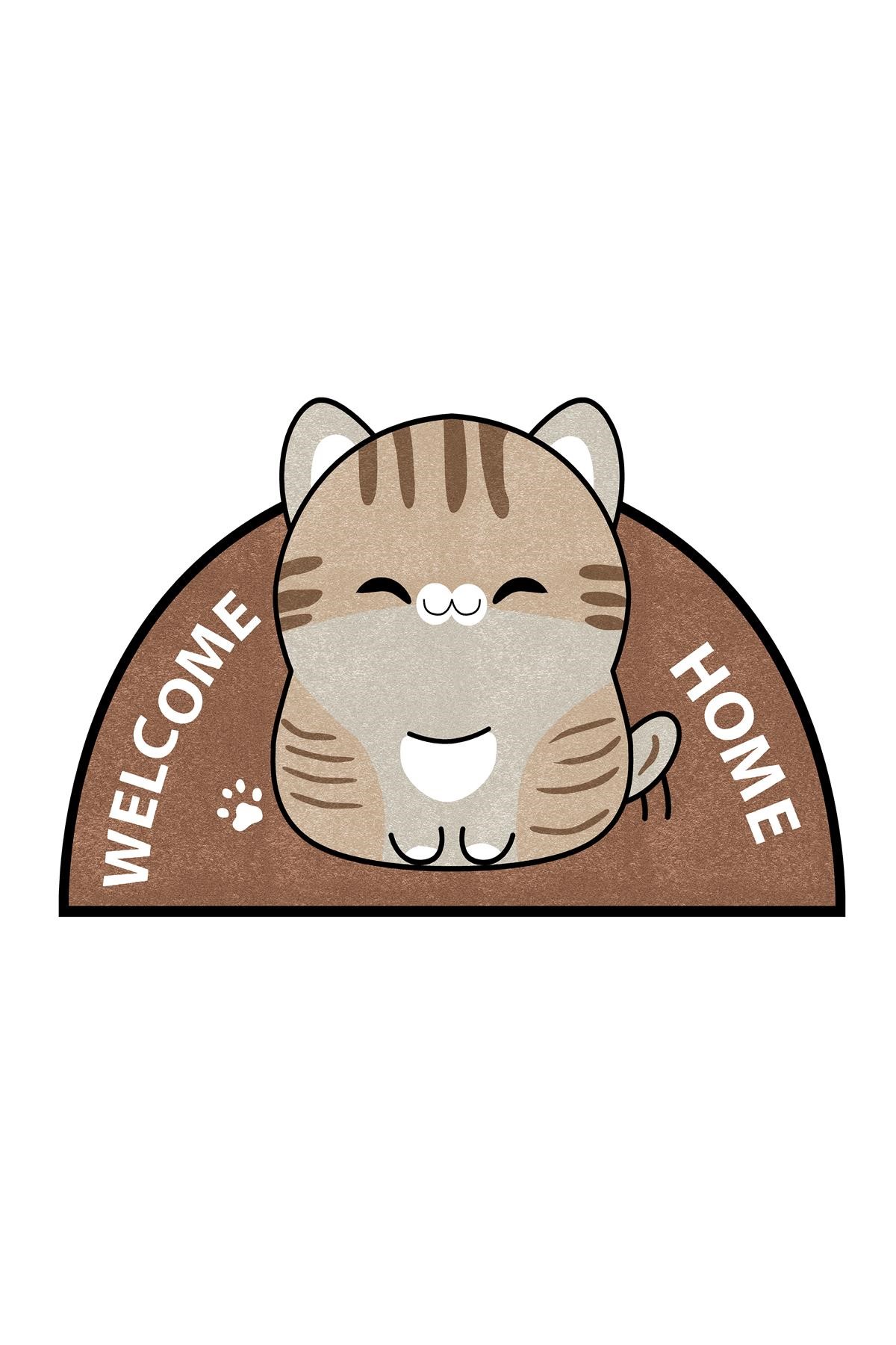 Dekoratif Dijital Baskılı Kedi Desenli Kapı Önü Paspası