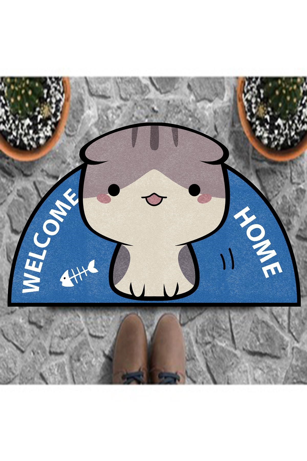 Dekoratif Dijital Baskılı Kedi Desenli Kapı Önü Paspası